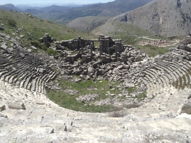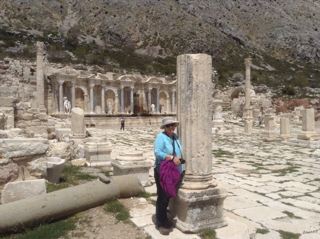 After an easy bus ride from Konya, we arrived at Gol Pension, to be greeted by two lovely sisters – Nejla and Samar, who run the small hotel. What a great spot! The very small island juts out into the lake…now connected to the mainland by a narrow causeway. Our room overlooks the lake, and we can watch the comings and goings of the locals from the warm, sunny rooftop terrace. We can walk around the island fairly quickly, it is so small. But that’s the appeal! We were planning on doing very little for the three days…until we heard about the ancient ruins about an hours drive away! Sagalassos is a bit off the beaten track, so it has nowhere near the volume of visitors that other sites have. We had it all to ourselves, well except for a handful of other tourists…but there were enough buildings to view that we certainly weren’t bumping into each other! Doric, Ionic and Corinthian columns all viewed and noted. Fantastic. There is still ice on top of the surrounding mountains, melting slowly into the lake! Nevertheless today we went for a very quick swim…I thought my heart was going to stop it was so cold.