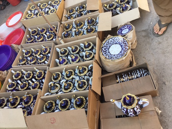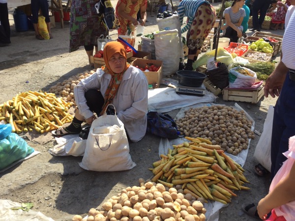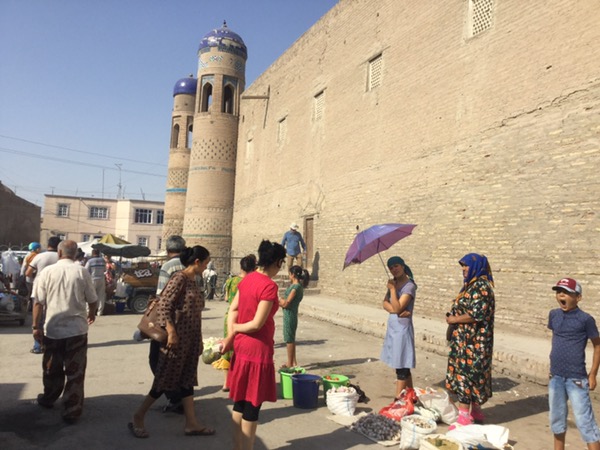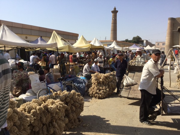 Everyone who has anything to sell, comes to the Sunday Bazaar. We had finished looking around the city, we had climbed the walls, enjoyed the buildings and monuments, adored the Terrassa Cafe and were ready to leave for Ancient Khorezm (in the desert). But we had one last stop…a short stroll through the huge bazaar. The roads are closed so people can spread out their wares along the streets, the rest of the city seemed deserted, and when we entered the bazaar we could see why!