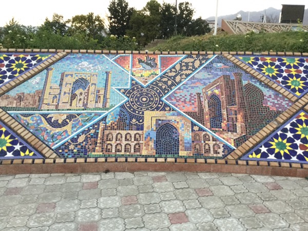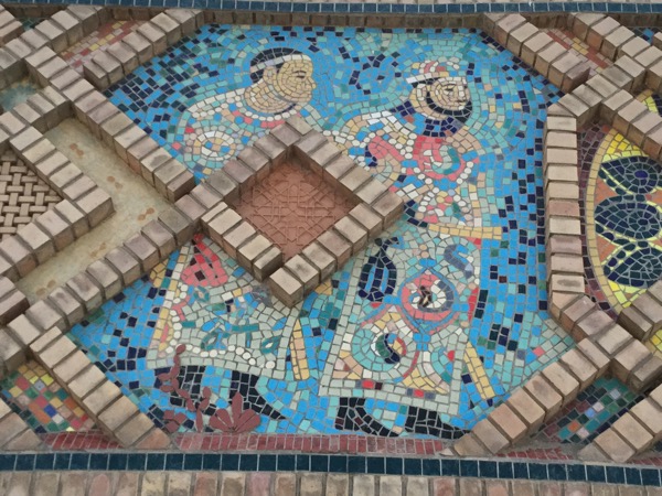 Mosaics near fountain in park