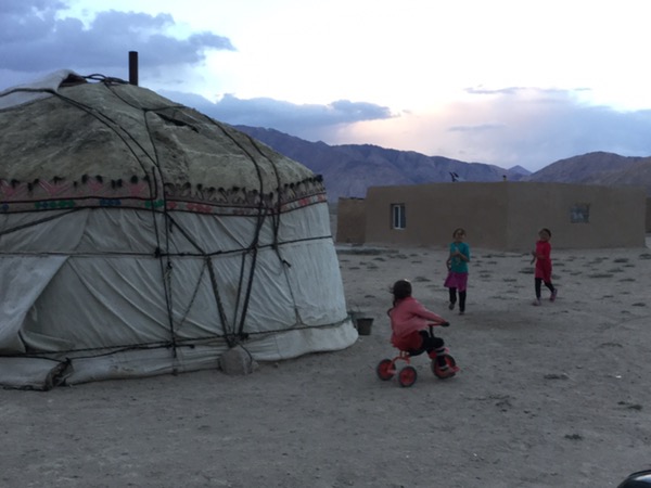 As we approached Bulunkul, the isolation of this small community became apparent. The lake was beautiful, but also mosquito infested, so no one was about. The settlement was away from the lake and consisted of a number of mud brick houses. I was still feeling sick, so slept the afternoon away while Lionel went wandering about. There were lots of children out running around and laughing; the owners have three young daughters who kept coming into our room unannounced to get something and to have a sticky beak. It’s hard to imagine what the people would do here to make a living…there wasn’t much evidence of gardens…