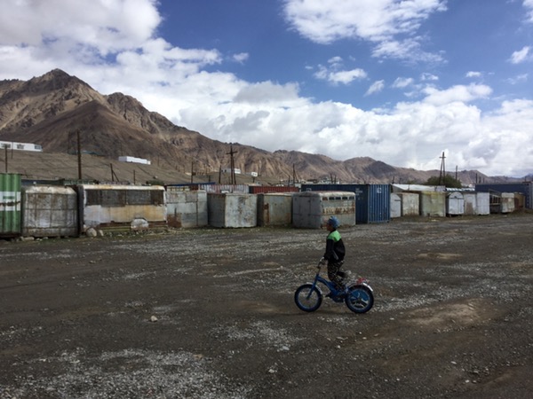 After the isolation of Bulunkul, we drove on to Murghab, which is the regional centre of the Pamirs in Tajikistan. We stayed at Ayperi’s Guesthouse while Daniyar went home to his family for the night. Murghab feels like a frontier town. There are only two main roads, one of which is the Pamir Highway. The streets have interesting names like “40 Years of Victory” and “15 Years of the Republic of Tajikistan”. We wandered down to the bazaar, which was a collection of containers and old railway carriages. On the way a couple of women and a boy called out photo! photo! So we took their pic and the lady gave me a two line address to send a copy to her…no name! Ayperi, at the guesthouse translated it into English for me, so we will see what happens there!