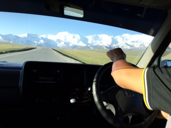 We had climbed down from the truck a couple of times to show our passports, then had waited about an hour in the truck line before an official instructed us to walk towards the border post. At the checkpoint it looked like we would have a long wait as the opening times were based on Beijing time and it appeared to be lunch. There were about 15 people waiting, and after a while they started letting us through, however the scanner wasn’t working properly and this caused another holdup. The actual border is almost 150km further along the road, so we were very relieved to see the driver that Osh Guesthouse had arranged for us waiting near the exit.