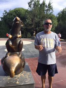 The reason we stopped here was to see the Great Wall in the west, along what is known as the Hexi Corridor. It’s still surrounded by desert. We caught the train from Dunhuang and were in “hard seat class” it took a while and there wasn’t much conversation with our fellow travellers.