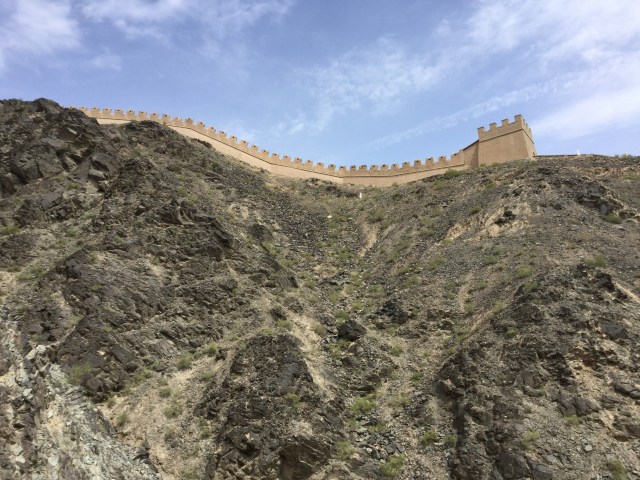 We asked the front desk about a taxi to the Overhanging Great Wall and the First Beacon, which marks the beginning of the Western Wall. Like Jiayuguan Fortress, much of the wall here has been rebuilt using local materials such as mud bricks, straw and dirt. I think it’s wonderful that they have preserved it, especially as there is a large industrial city encroaching on it!