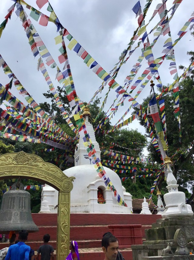 On Friday we met Rabin, Barb’s friend from a previous visit. He kindly offered to drive us around to see some of the wonderful old heritage sites. Our first stop was Swayambhunath (The Monkey Temple). What an amazing place, and what a fabulous view of Kathmandu.