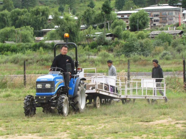 Instead of driving for about 10 hours over the mountains and rough roads, we took a 25 minute flight to Jakar…About an hour and a half from our final destination Tang Central School. What a flight! One minute I was watching trees loom close to the plane, then we banked and I was looking up at blue sky! Another short runway, and then we landed. The control tower and luggage collection were unusual, but the whole trip in went very smoothly, even though it hasn’t stopped raining since we arrived…well for a few short hours.