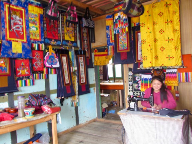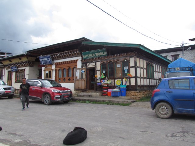 After the Dzong, we spent a few hours walking along the main street looking at all the handicraft shops….there were plenty! We were wanting somewhere to sit for a while and stumbled into a bar! A G&T later ( whisky for Barb) we walked back to our hotel.
