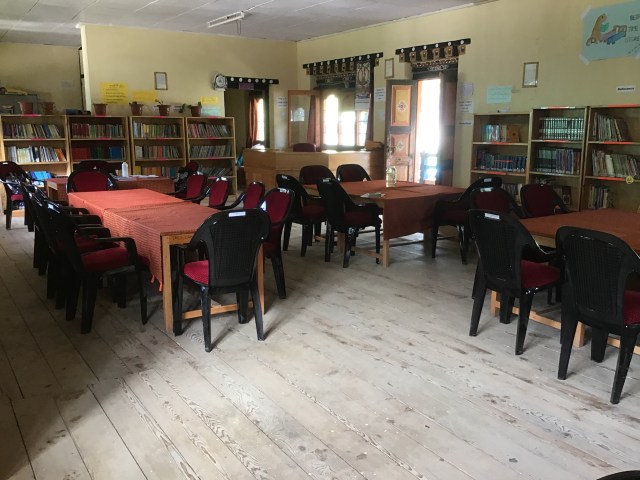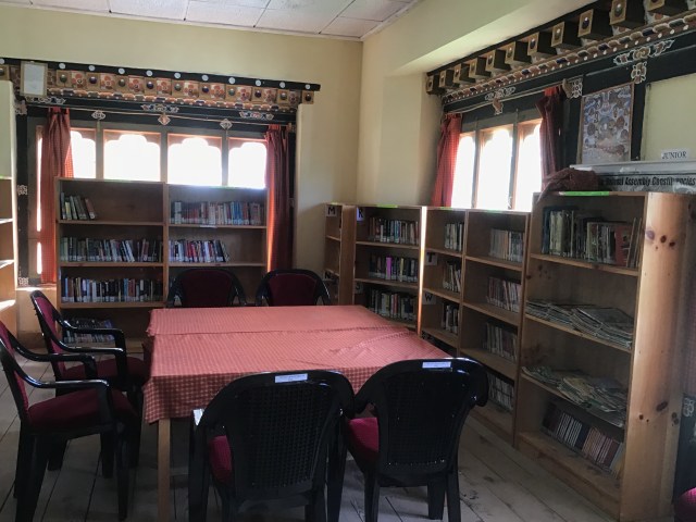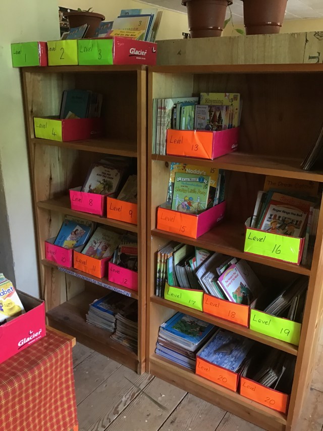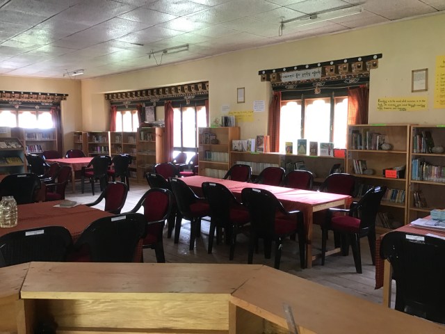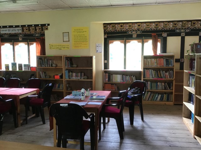 There were so many donated books at the Tang Central School library, that the shelves were overflowing. Jamyang and Sonam had done their best to organise the shelves without library training to guide them. So when Barb and I arrived, she was keen to level the books that could be used as readers, and I was keen to organise and relabel the shelves. You can imagine I was in my element!