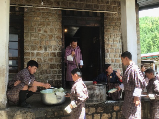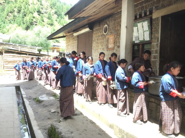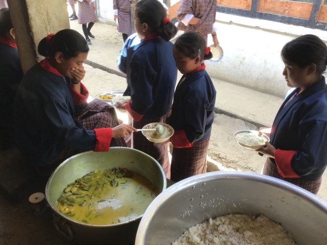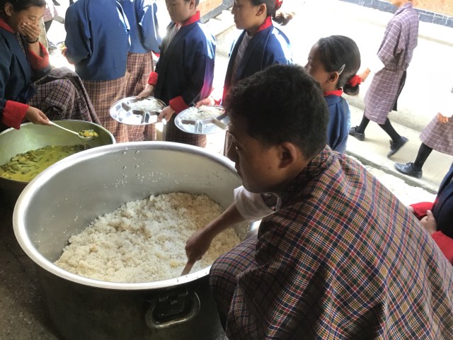 The kitchen staff are amazing! They manage to feed over 500 children at breakfast, lunch and dinner. Their kitchen facilities are far from modern! The kids line up with their own plates and cups. A teacher is rostered to supervise and the line moves slowly past the huge cauldrons.