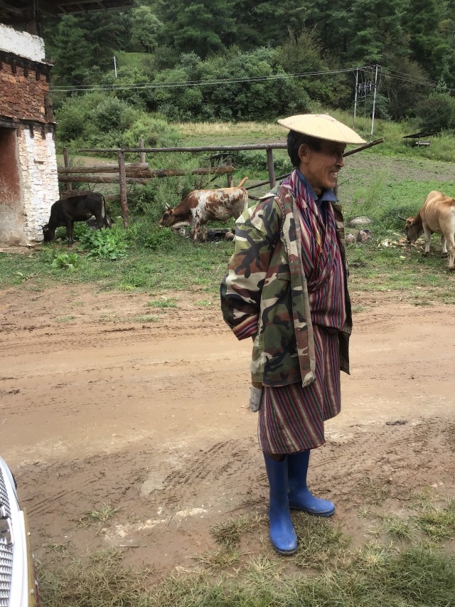 The day after Alex, Nav and Virginia arrived back in Chamkhar, we headed out to the valley to show them our school and the private family run museum further into the valley. We set out in two little Suzuki Maruti taxis, which ploughed their way through the muddy rough roads. Amazing vehicles…nothing fazed them, even the steep climb up to the museum carrying four women wasn’t a problem!