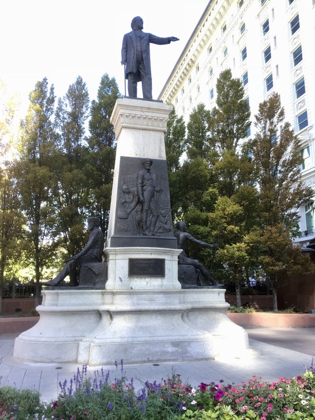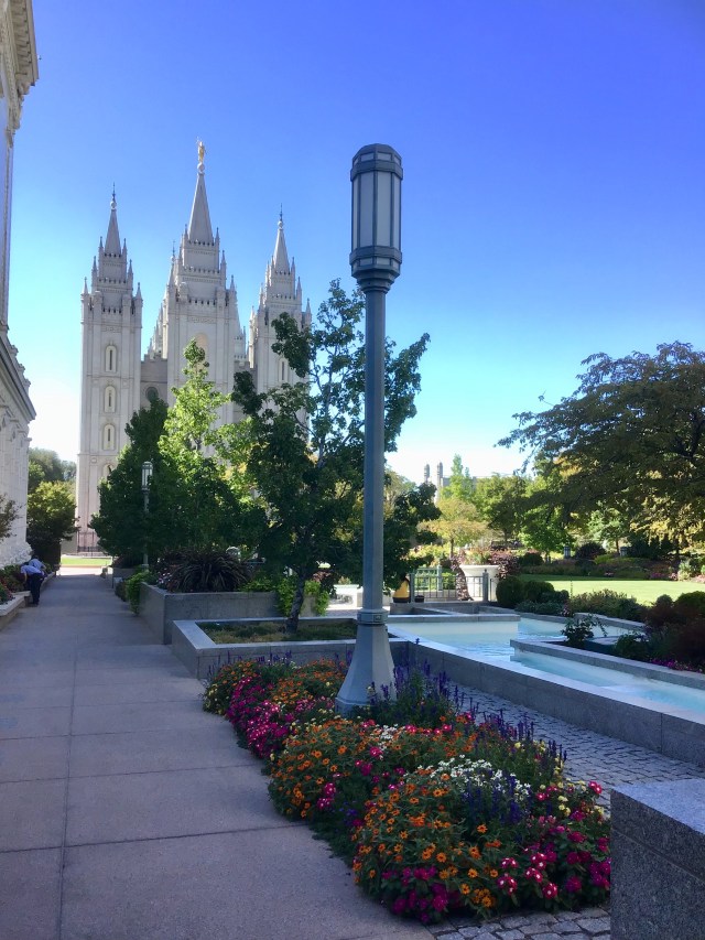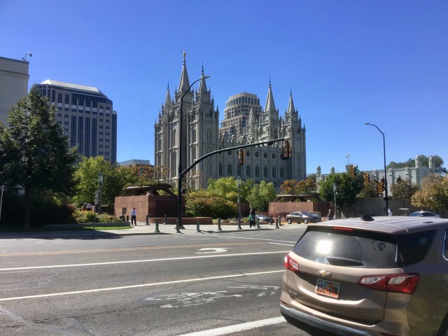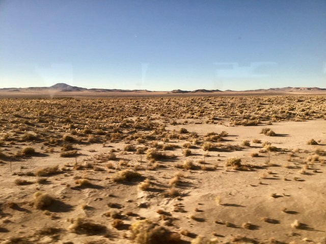 We arrived at 3am on the train, thankfully a taxi turned up and we would have paid whatever he asked to get to our hotel! Today we wandered around Salt Lake City, headquarters of the Mormons. I don’t know what I was expecting, but it was just like other large cities, but with a well designed grid, wide streets and spotlessly clean parks and open spaces. There was however a huge temple from which all the streets radiated. This is the view from the train as we left Nevada.