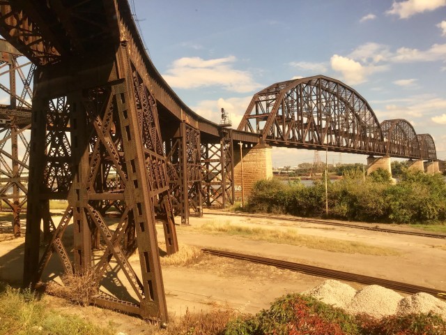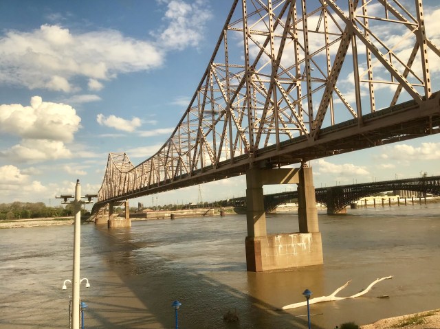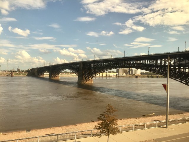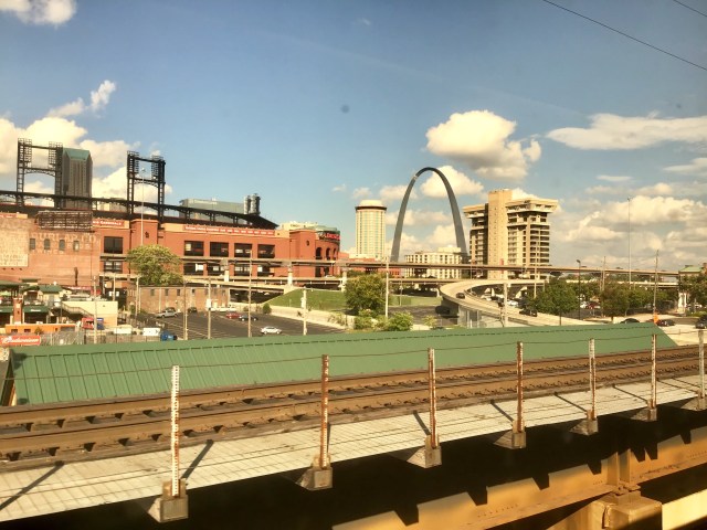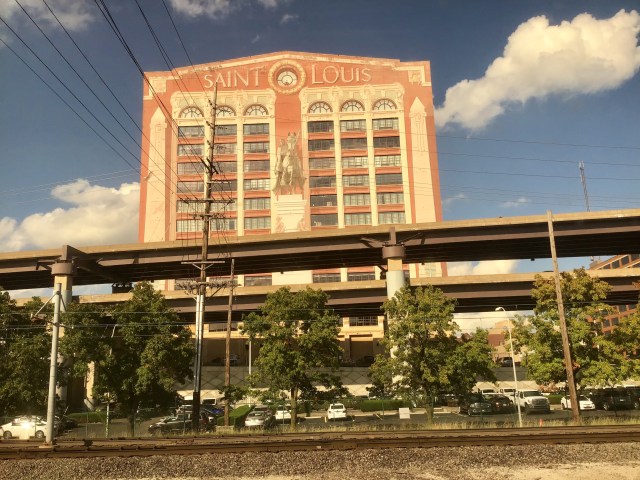 As the train approached St Louis, there was the mighty Mississippi…there were bridges and more bridges at frequent intervals. And all the public transport was located in the one hub…excellent. We had to walk across the tracks, Lionel was telling me to look š and as he did a train came slowly around the bend…now was not the time to get our foot or wheels stuck in the tracks! (Here comes the train…here comes the train…)
