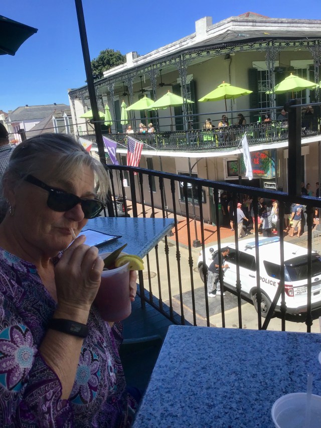 Bourbon St and the surrounding district have some fabulous old wrought iron work on the verandahs. We sat upstairs at a bar for a while and watched the passing parade, most entertaining!