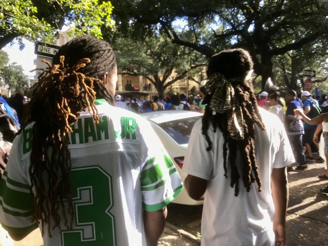 Waited a long time for the trolley car and in the end started to walk to St Charles Ave. It was also a very long wait there, so we walked on until the trolley caught up. We were heading for a parade, that Pat and Brian (two Aussies we met) had told us about…and we just caught it as it meandered by…