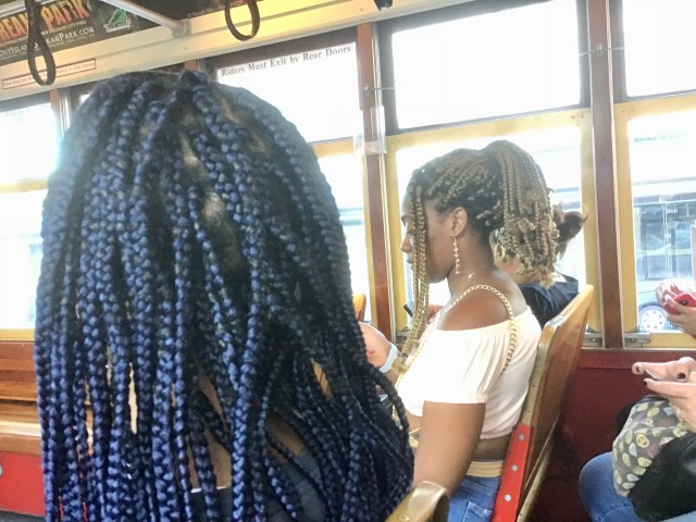 I just love the elaborate hairstyles! This girl in front of me on the trolley seemed to have blue hair! We could have spent a few more days in New Orleans, but tomorrow we move on to Texas.