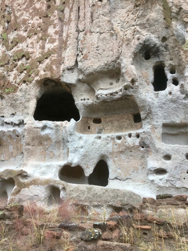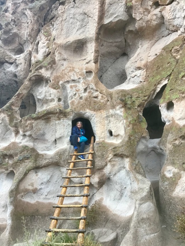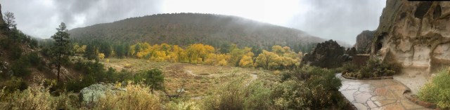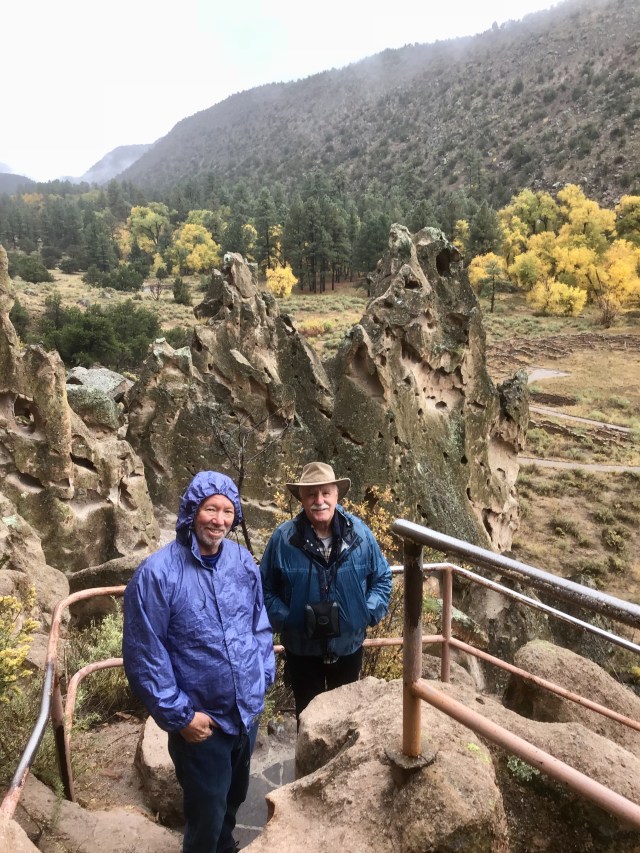 Lynne and Bernie picked us up for the drive to Santa Fe, on one of only about five rainy days per year! So nice to be travelling in luxury …being chauffeured about! Yesterday they took us to Bandolier National Monument. An area where Indians use to live in caves on the side of the mountain.It was wonderful. You really notice Autumn and understand why the Americans call it fall!