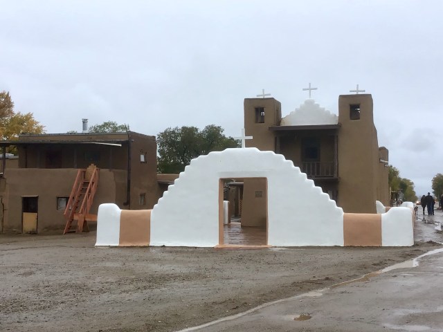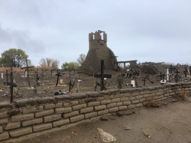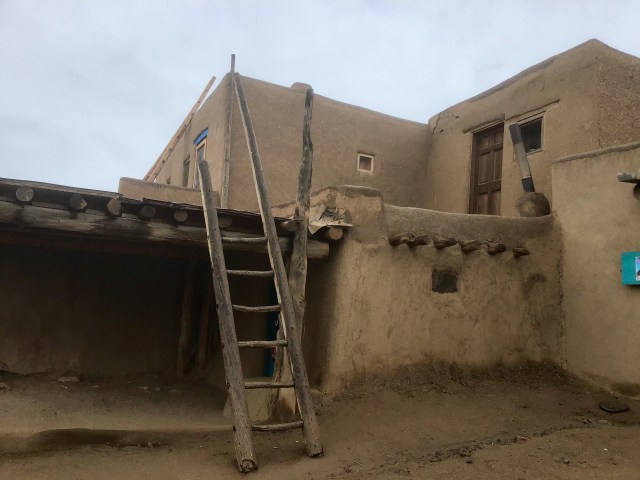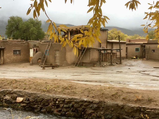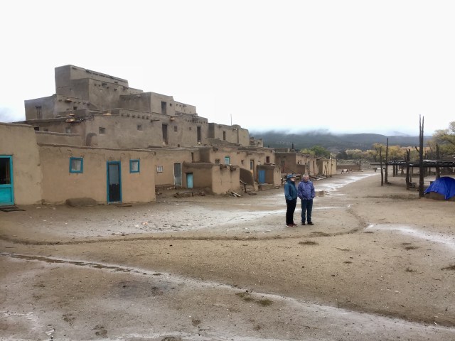 After that we headed across the valley to visit Taos, and the Indian Pueblo. It was drizzling on and off all day, but it was still worth coping with the wet to see the Pueblo.