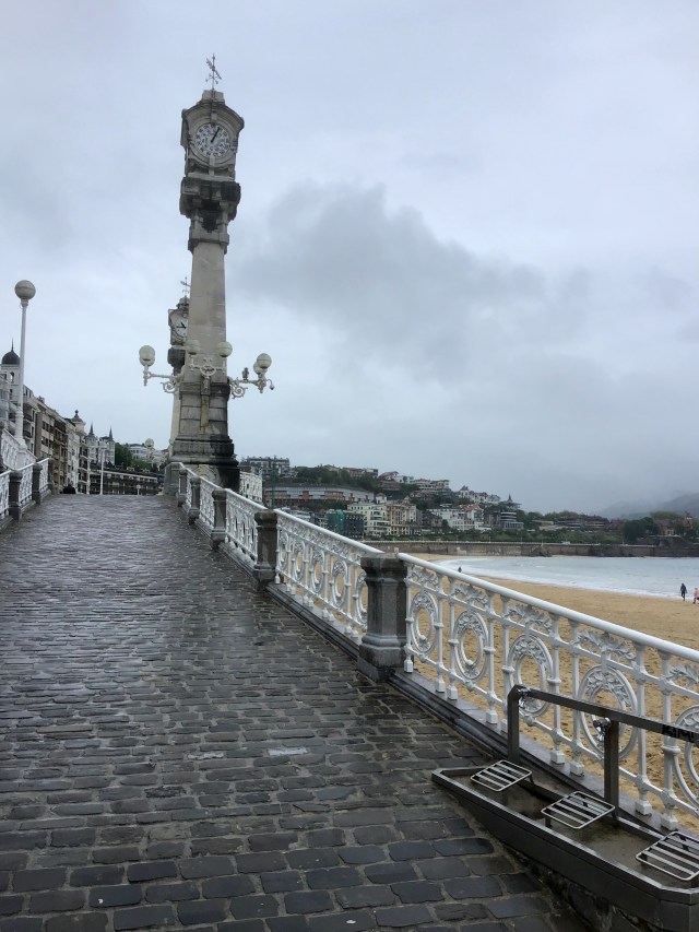 We weren’t catching the train until 4pm, so we had a few hours to wander. It was still raining fairly steadily, so a swim was out of the question! But we did walk along the promenade, there was a decorated pavilion of sorts. And someone had gone to a lot of trouble with some sand art. I also liked the way the waves crisscrossed as they came to shore.