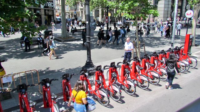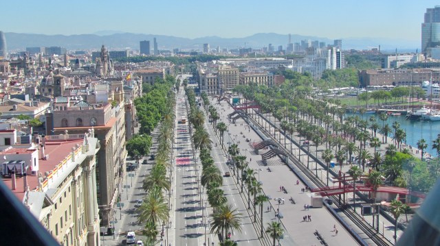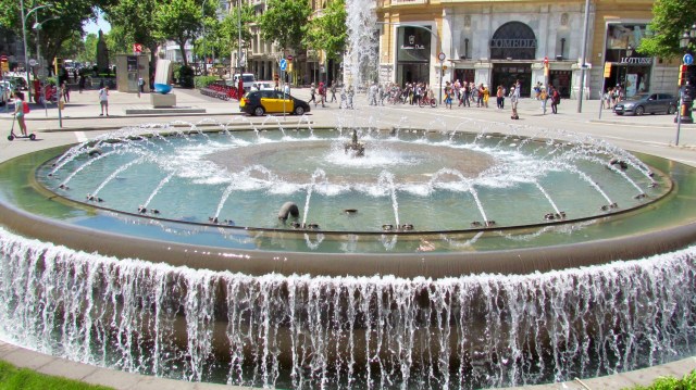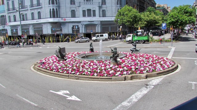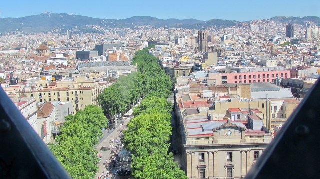 Four hours on the bus, past lots of productive farms and rustic villages, we finally arrived at our last destination. Barcelona is pumping! We walked for about half an hour from the North bus station along streets teeming with people…and sidewalk cafes. The main streets are wide and shady. Plenty of shrubbery and parks.