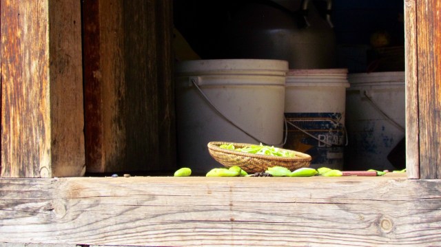 The women are both relatively old…it’s hard to tell, but possibly around my age (63). They are up early every morning, feeding and milking the cow, gathering water, spreading out vegetables and doing a multitude of other tasks long before we have risen. Sometimes they are barefoot!