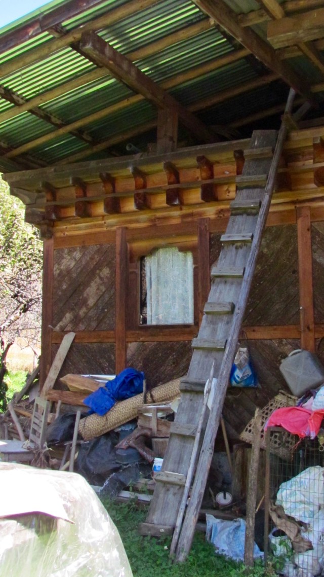 We are staying in an upstairs apartment, with a flushing toilet and a very good hot water shower. Our neighbour and we think, her sister live behind us in a log cabin, without either of these facilities.