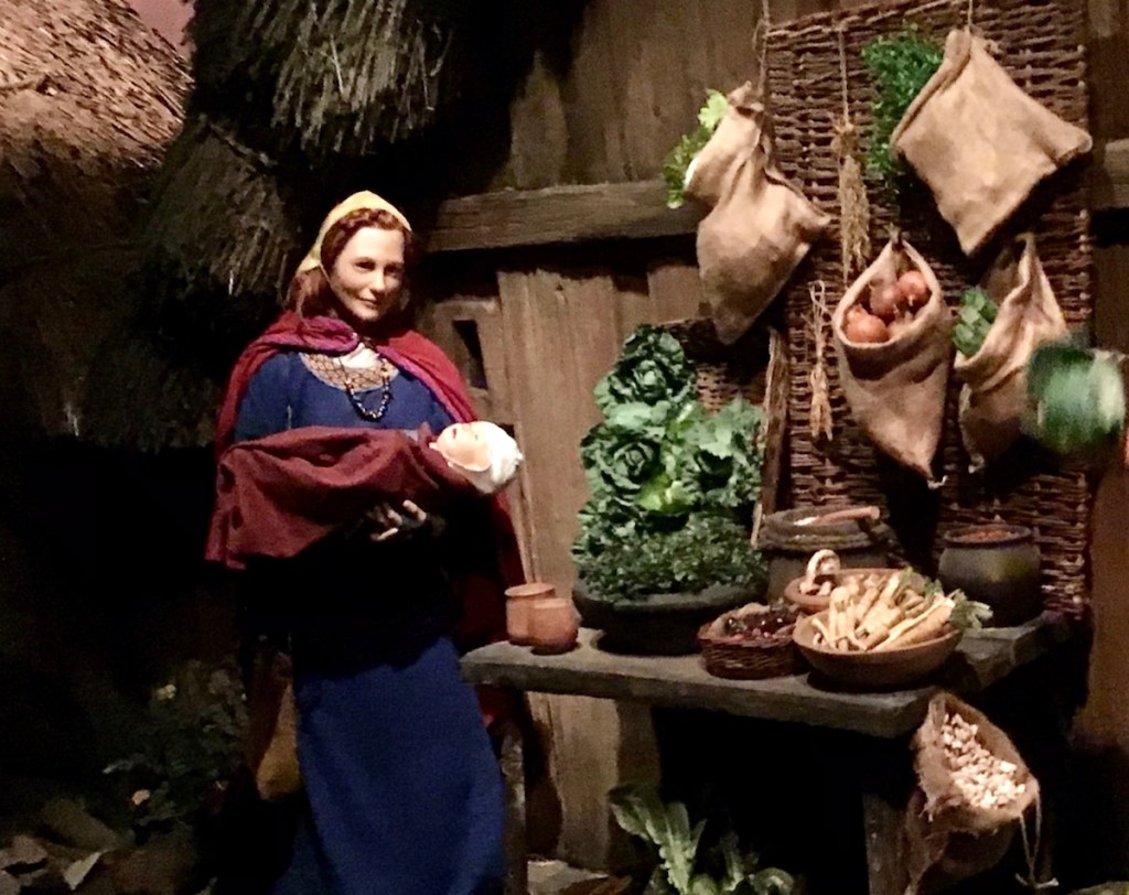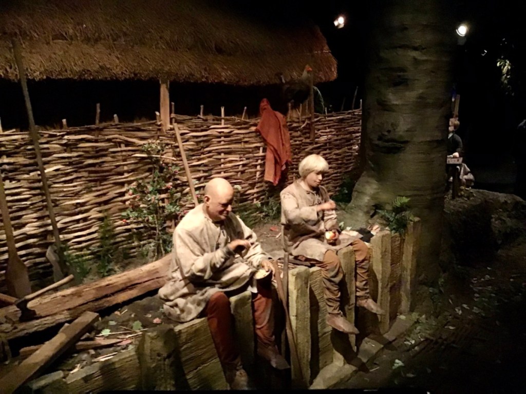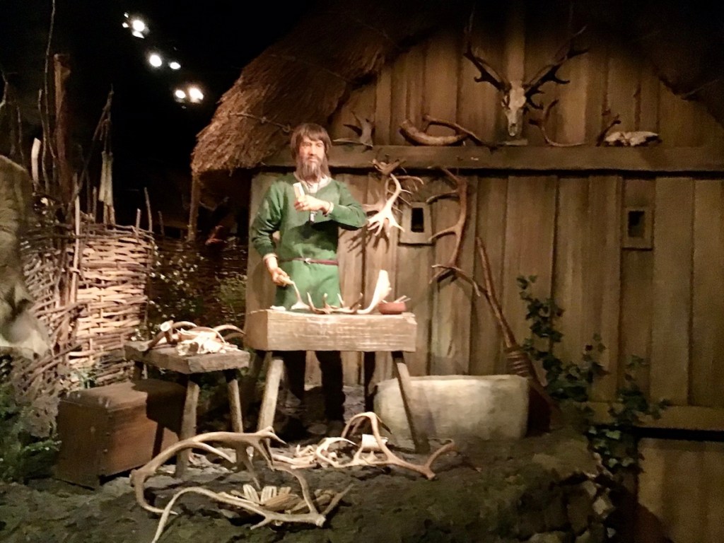 The second part showed various artefacts that had been found on site, we had a chat with the “live” mannequin, who told us all about Nalbinding, a craft that began before knitting, over a thousand years ago. Nothing was wasted in Viking villages, items were repurposed until they basically disintegrated! Perhaps the modern world could learn a few things from them.