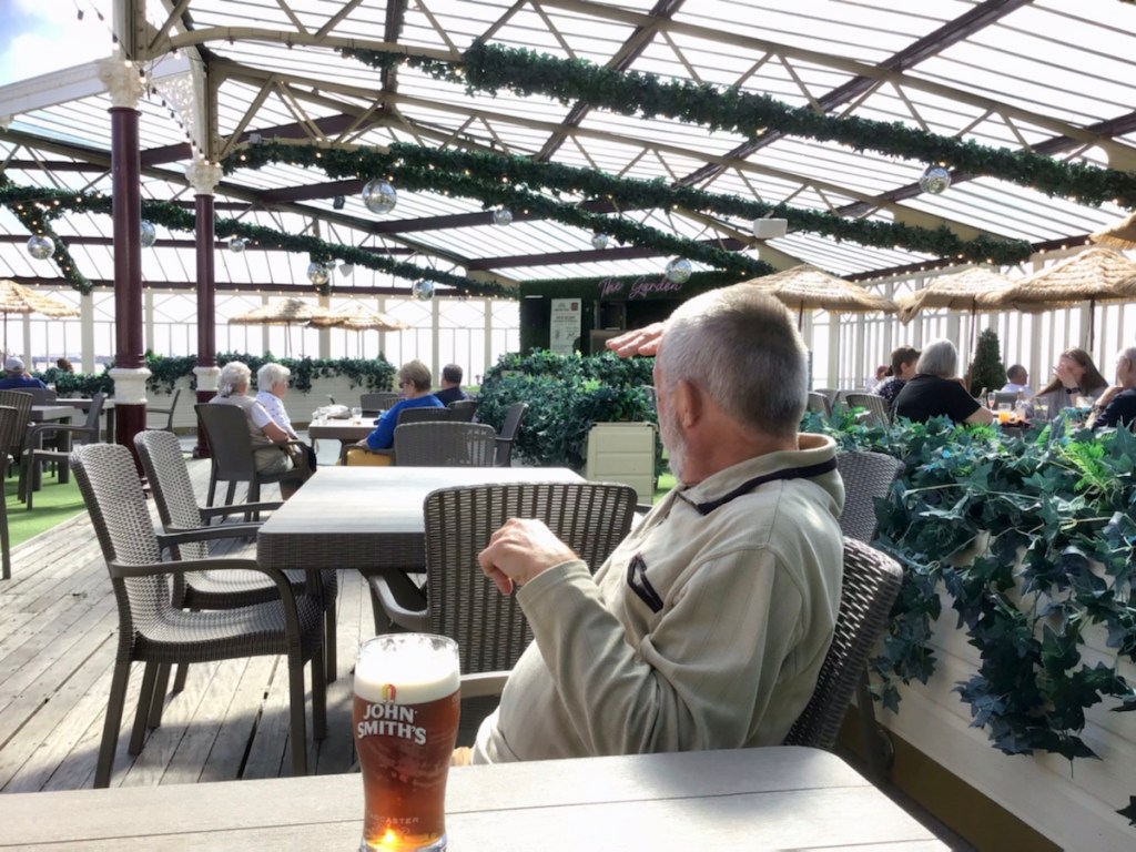 From our room you can watch the tides changing. It’s quite dramatic and the pools left behind as the tide recedes glisten in the afternoon sun. There are three piers, stretched out along the promenade. We walked to South Pier and back again past North Pier yesterday, of course we had to stop at each pier for a drink to sustain us.