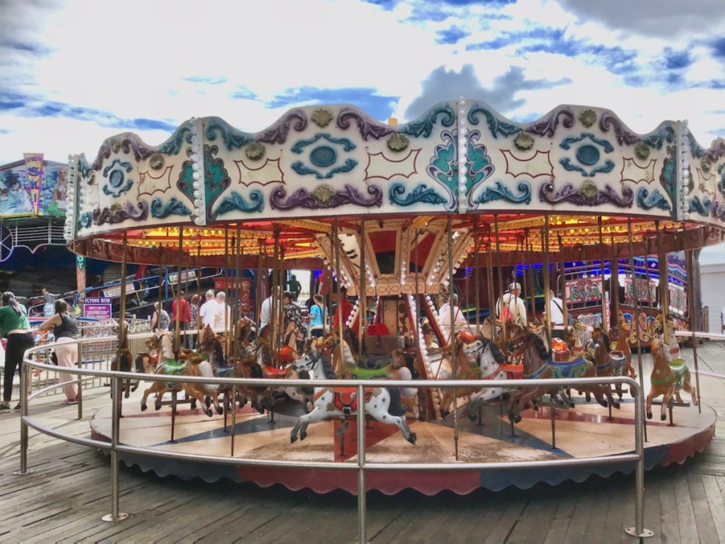 There are lots of amusement parlours, pubs galore, carnival rides, horse-drawn carriages, side shows, ice cream vendors, and fish & chips cafes everywhere. Most of the pubs have disco music blaring or solo musicians singing popular tunes with piano accordion or keyboard accompaniment. A feast for the senses! Just sitting and taking it all in is entertainment enough. It was like going back in time to childhood holidays on the Central Coast (Toukley)…but better!