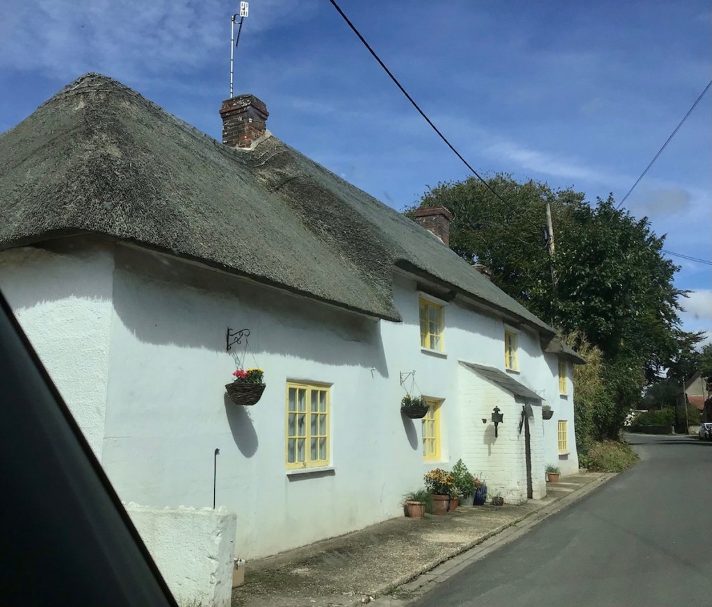 There are so many gorgeous little villages along the way, and beautiful rolling hills. It’s hard getting a decent shot as the hedgerows are all too high! I did manage a few pics of the thatched roofs on the cottages. Lovely!