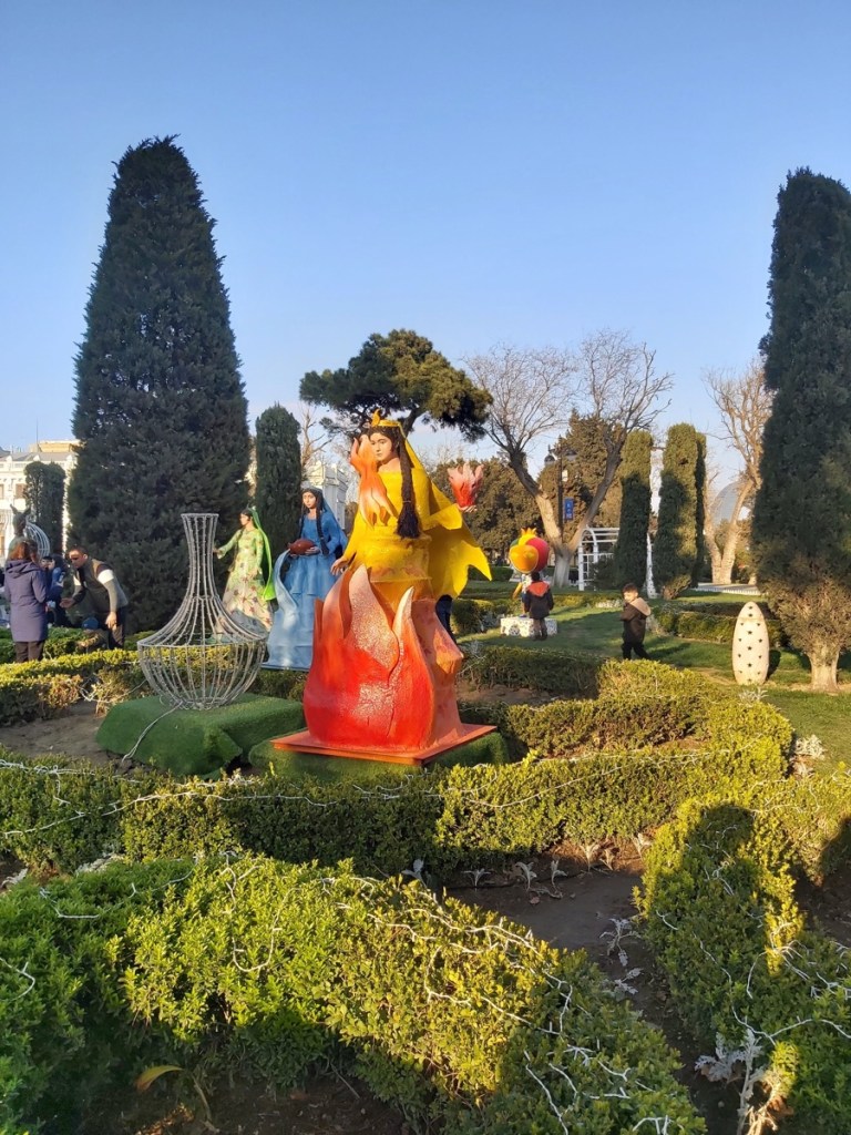 The city is buzzing. There are thousands of people out and about celebrating Novruz, which is a week long festival to herald in Spring. There are decorations everywhere, and stages in the old city, and by the water, with many music and dance performances.