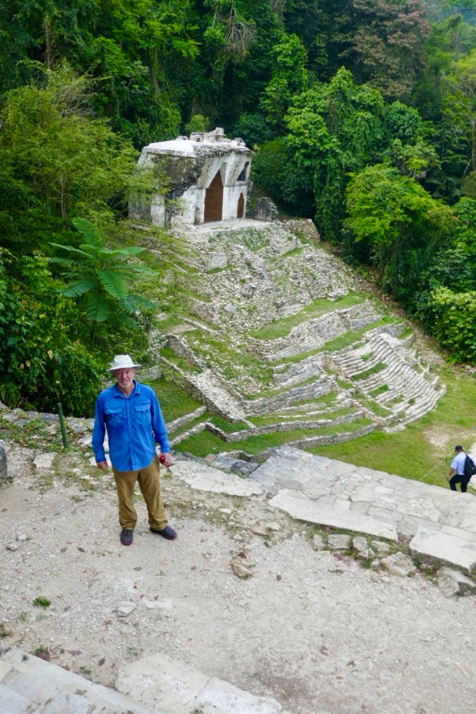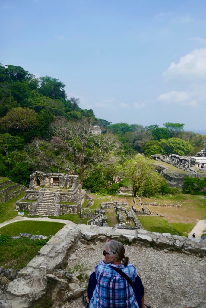 The following morning we were at the Palenque Ruins just before 9am, in order to beat the heat. The ruins are in the jungle, many still covered in vines, weeds, trees and earth mounds. A number are tombs, as well as a palace. It was a great place to wander around. Climbing the steps was a challenge and everyone was in a lather of perspiration as we waited for the bus, an hour and a half later. So glad we went early!