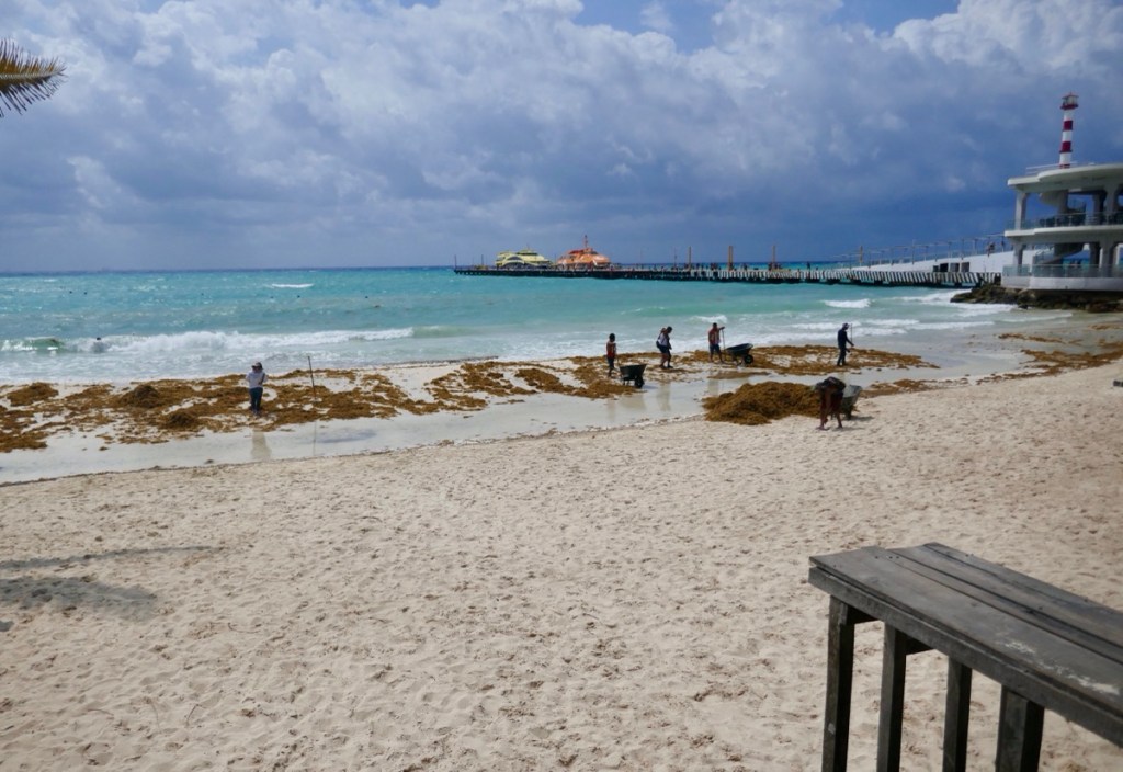 We did go for a swim in the Caribbean. The water was a beautiful aqua colour, but it was windy and the shore is covered in seaweed, which the workers rake up every day.