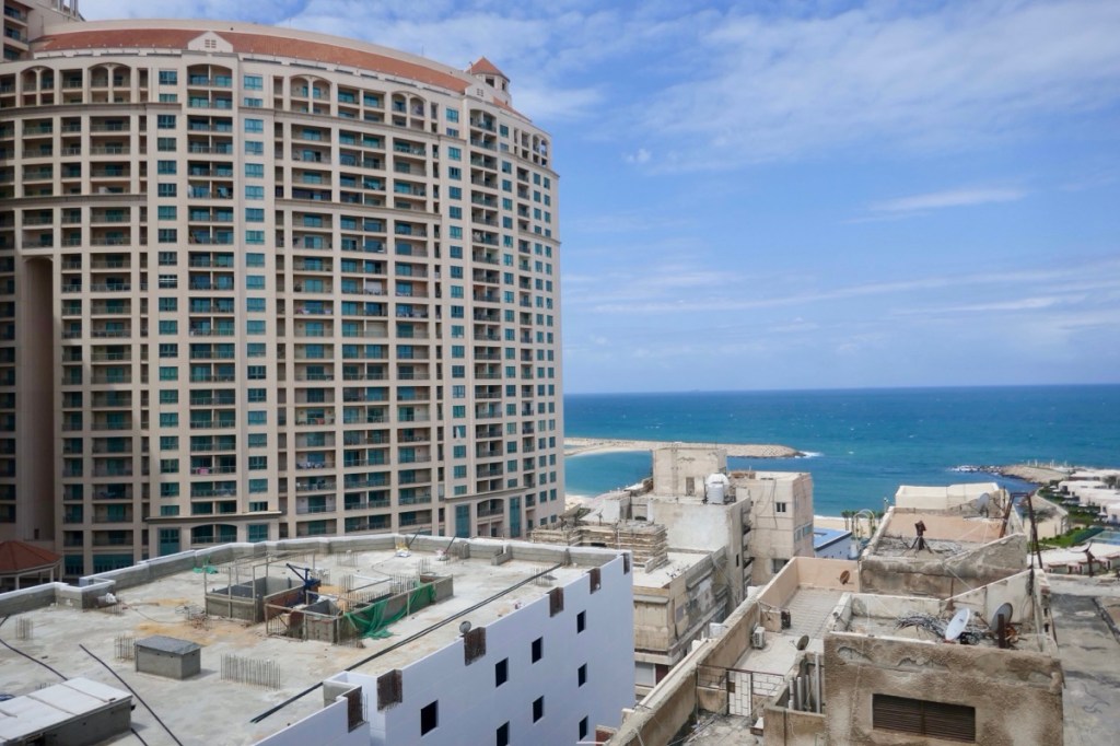 Well, it is a sprawling city, numerous apartment blocks lining the road that stretches all along the coast. We stayed out of town at San Stefano, right next to the huge Four Seasons Hotel. The beach was closed off for their use only. But it didn’t matter, because we weren’t likely to go swimming anywhere nearby! There were only a handful of young girls in the water (all discreetly covered up) and mostly boys. I did not see any women, let alone Westerners swimming. People were sitting on chairs along the shore. I think you had to pay to enter each beach area, so we didn’t bother.