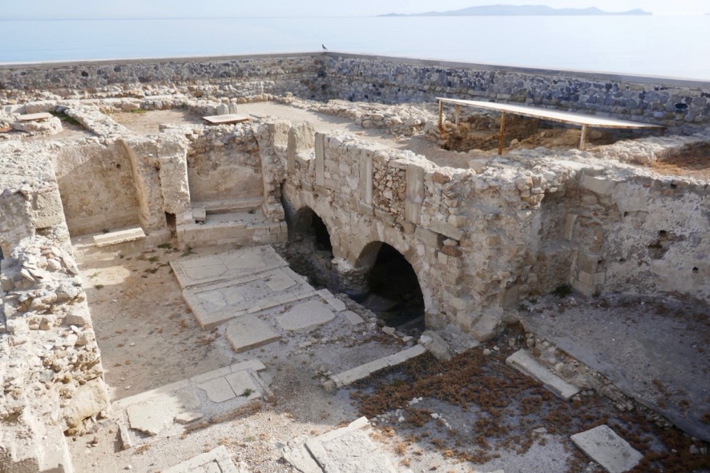 Heraklion is the main city, it is a labyrinth of narrow streets. But also well signposted directions to reach the city centre from the port (just follow the yellow painted line along the waterfront). We caught the hop on hop off bus to get an overview of places and locations. Then Lionel hopped off and I went to visit the ruins of The Knossos Palace. Another high school art history moment.