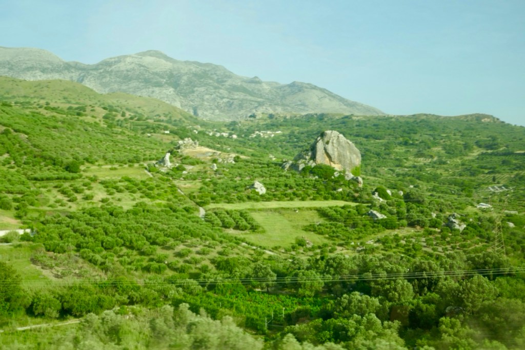 There are only three buses a day, so we caught the 7:30am from the bus station, a two hour ride to the south of the island took us across hills covered in olive trees and some vineyards. Past small villages perched on hillsides and through very narrow streets (which I’m amazed the coach-size bus could navigate), and we arrived.