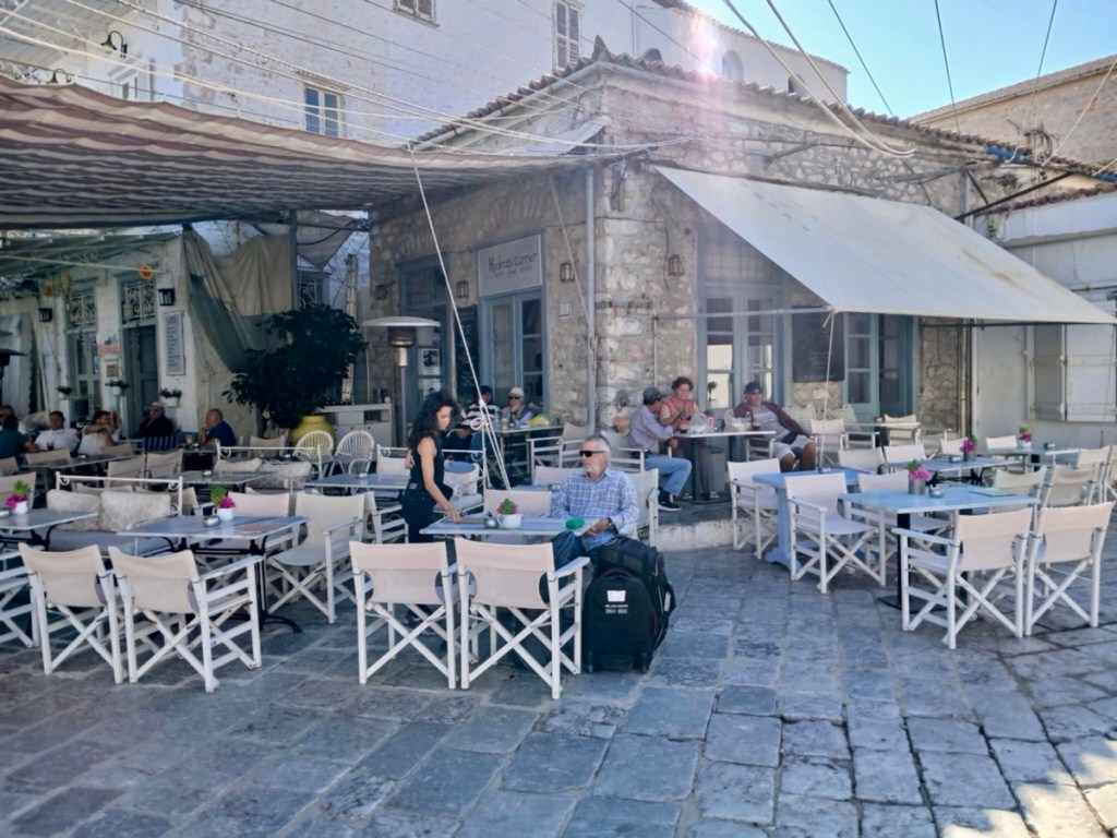 This morning we sat and had breakfast right next to the harbour until the ferry came. It was delightful, watching the water taxis, the fishermen, the big catamarans and the local old men drinking their coffee. It was peaceful until the large cruiser arrived with a few hundred people on board, eager to visit for two hours!