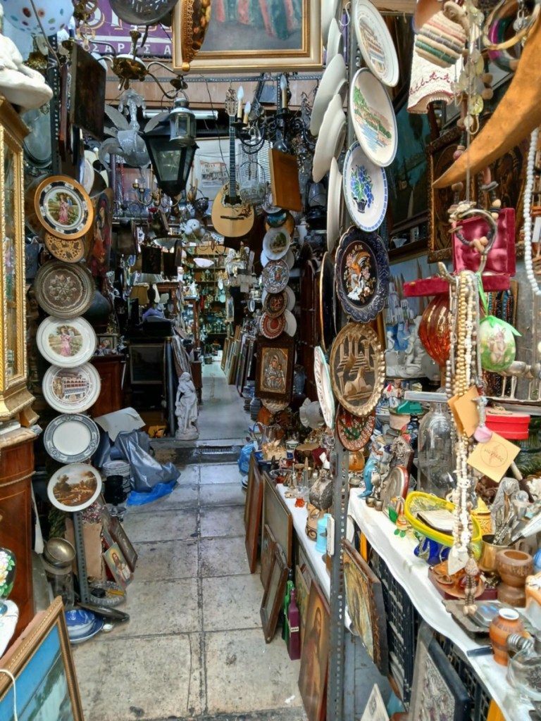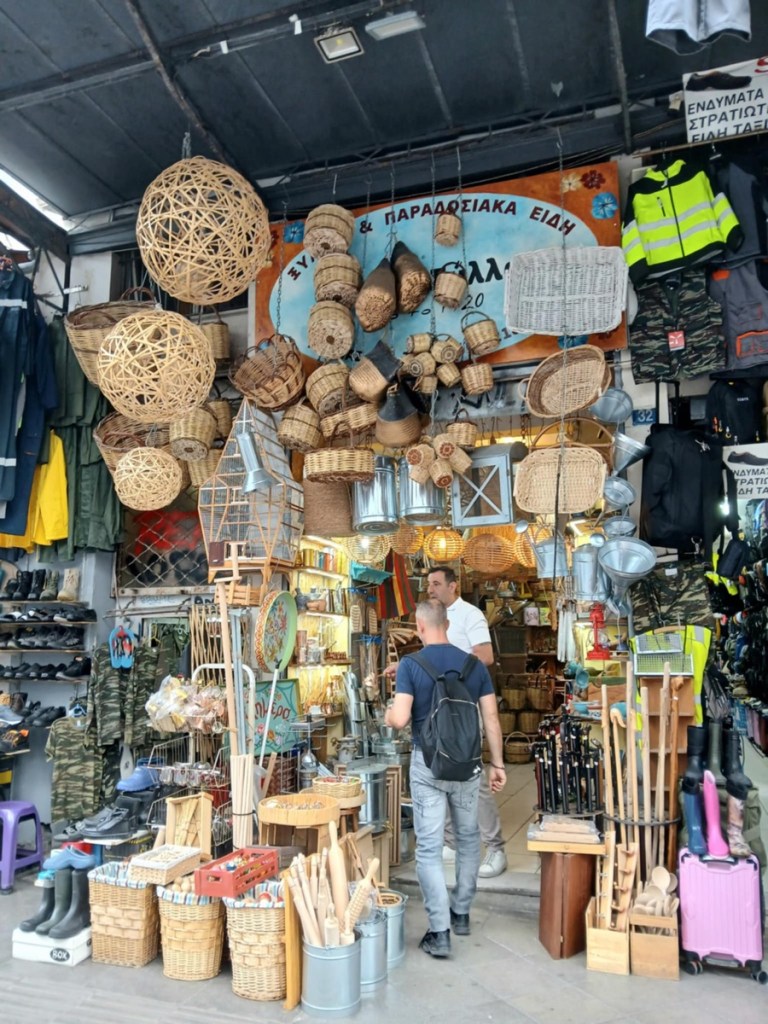 Yesterday we set off in different directions to do a bit of shopping. The crowds and hot weather are both increasing, it’s becoming uncomfortable to stay out in the middle of the day. I wandered around for about three hours, didn’t buy much, just a few beads and trinkets. I thought about new sandals but the price and quality were similar to at home, and not all are hand-made in Greece!